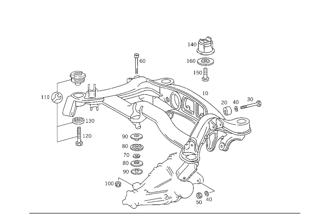 Rear subframe to frame floor unit,rear.